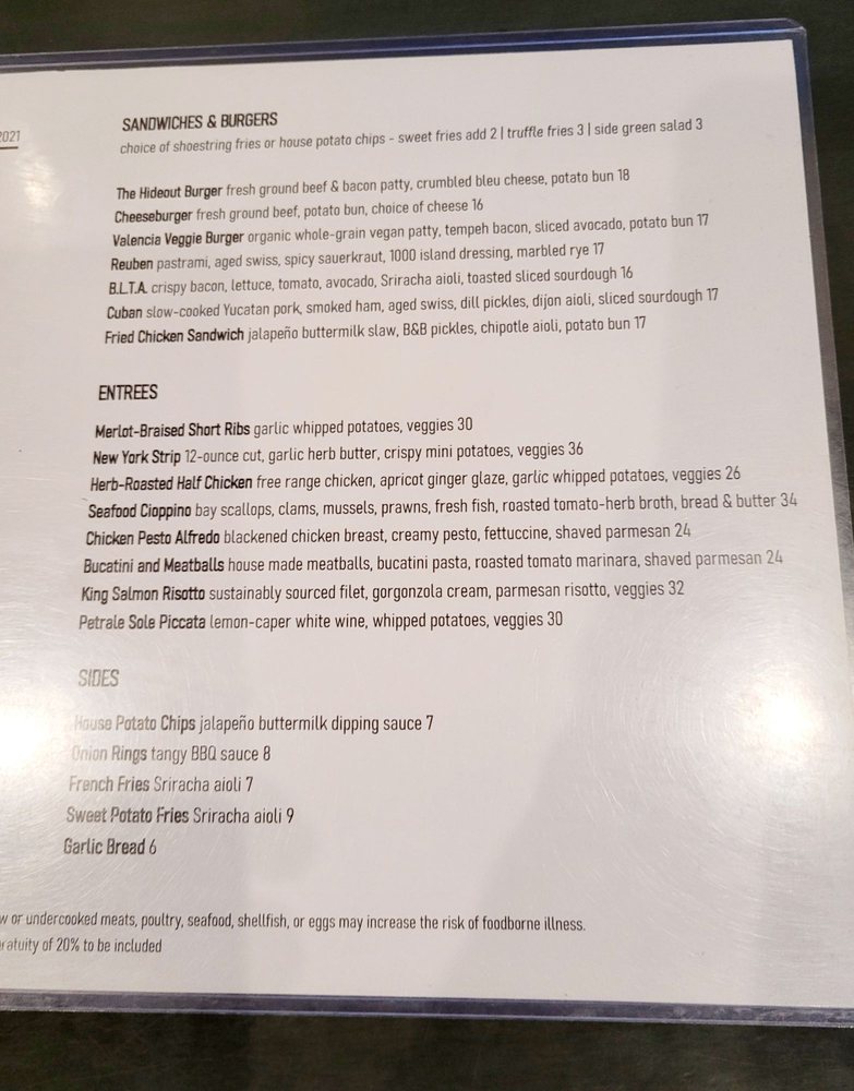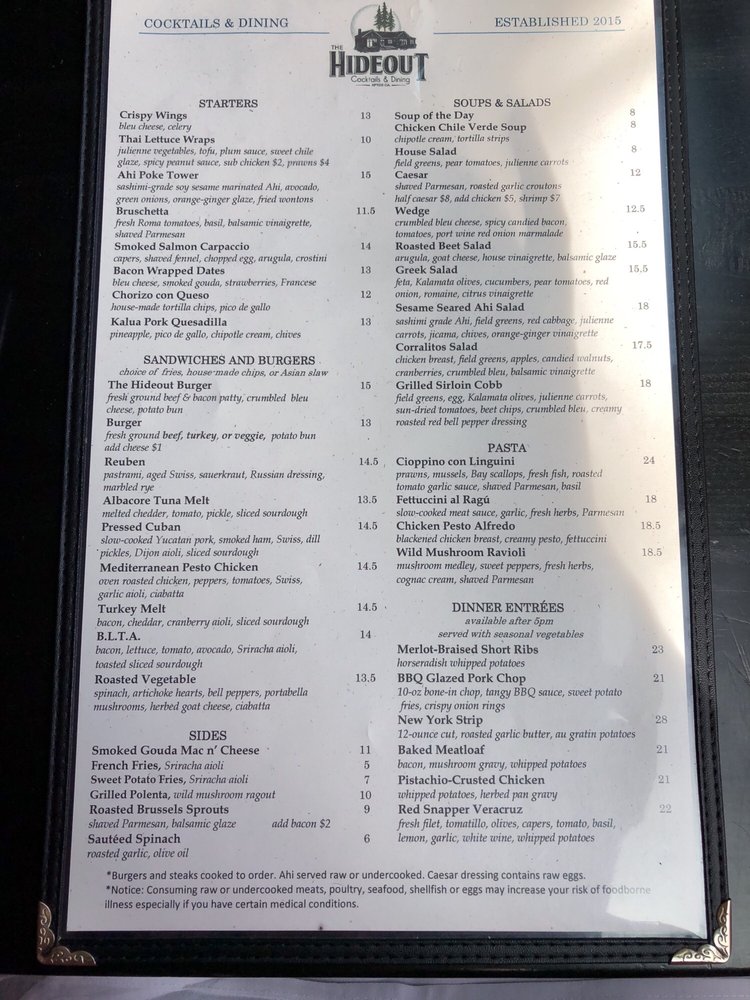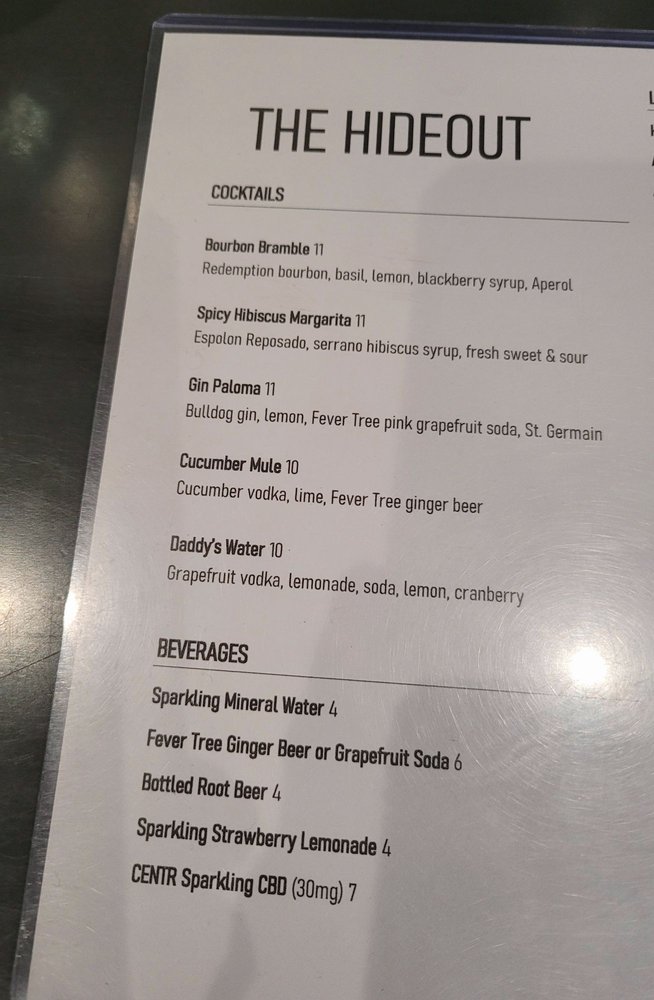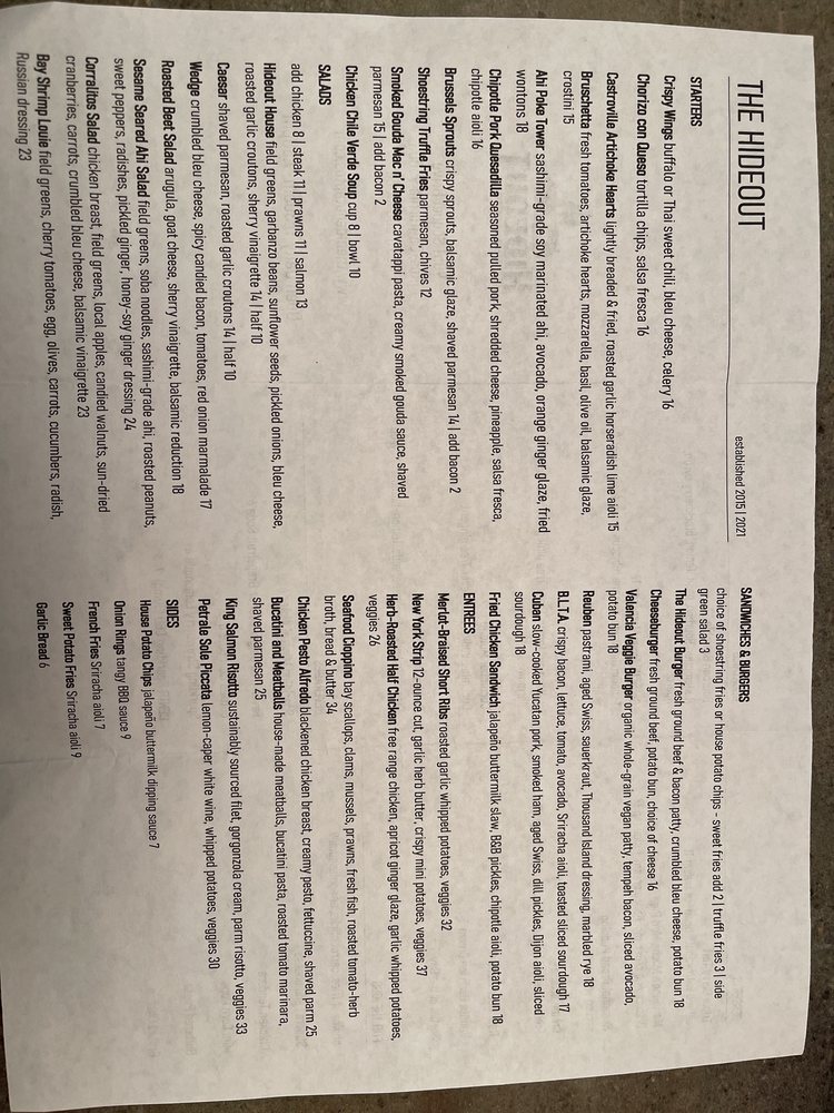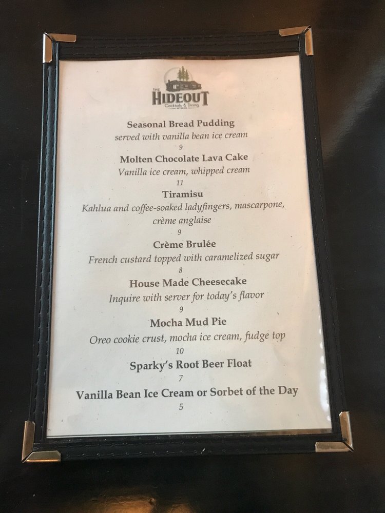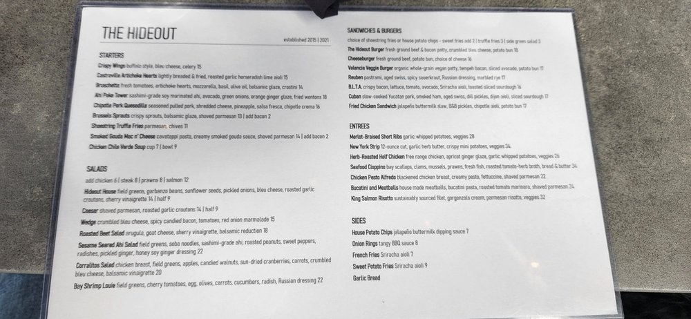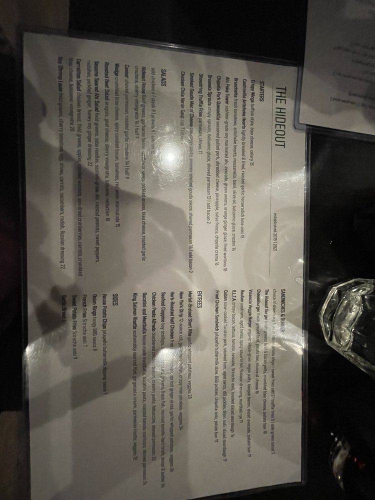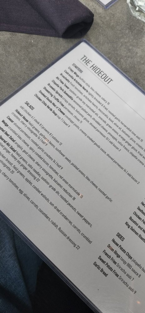 The Hideout Menu (Update 2025)